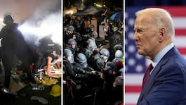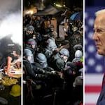 Demonstranter utrustade med hjälmar och sköldar av papperskorgar stormade mot polis vid ett ingripande på Portland State University.