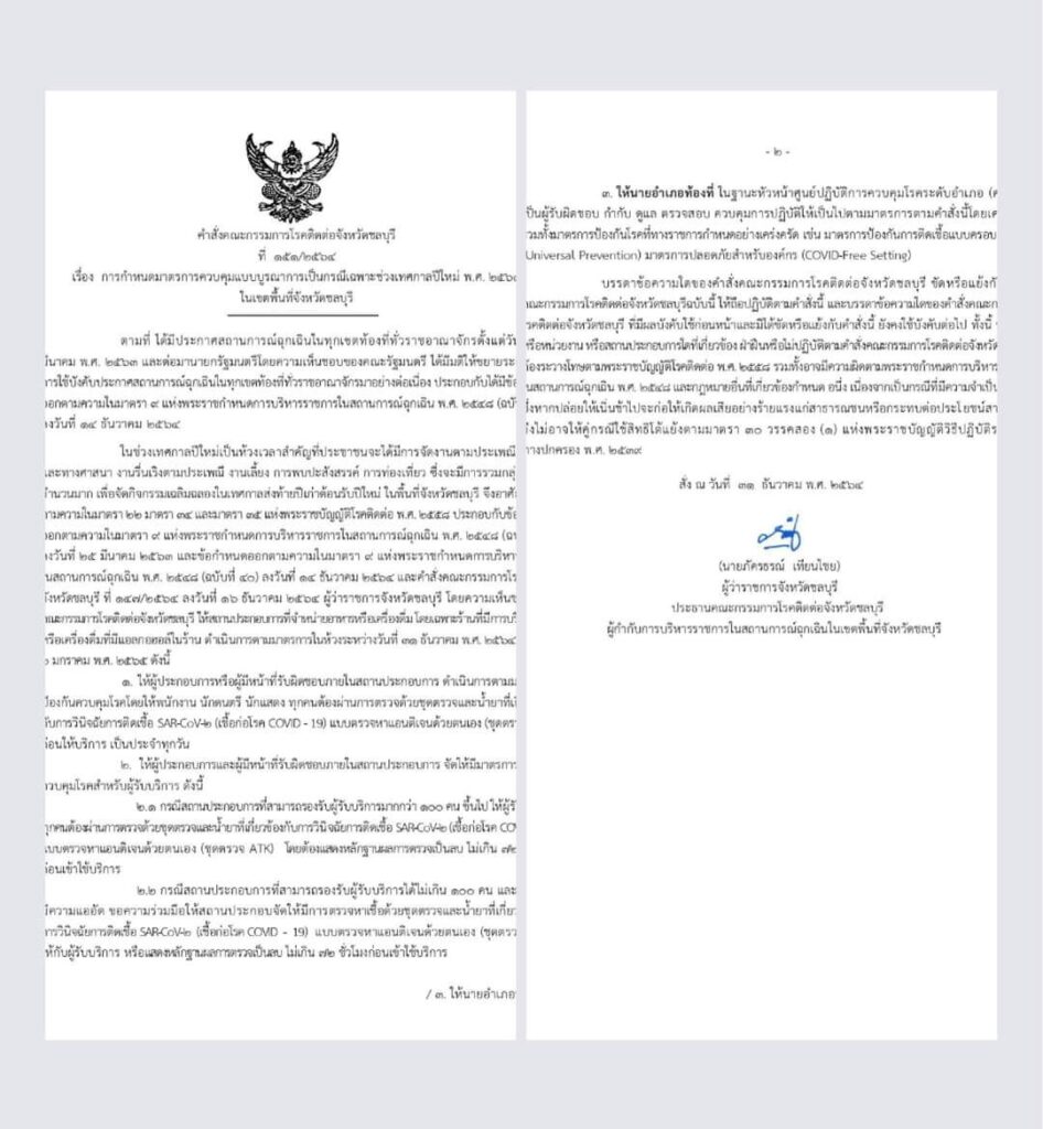 God morgon och gott nytt år. Chonburi-guvernören släppte en ny order tidigt i morse, den 1 januari 2022, och den publicerades på Chonburi Public Relations.