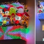 Belysta av exakt 4300 lampor syns disneyfigurer i tomteluvor trängas med trädgårdstomtar.