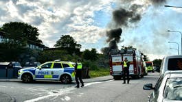 Det brinner i taket på en radhuslänga i Igelboda i Nacka kommun.