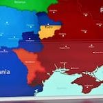Här visar den ryska ex-presidenten Dmitrij Medvedev upp en karta på hur han anser att Ukraina ska styckas upp.