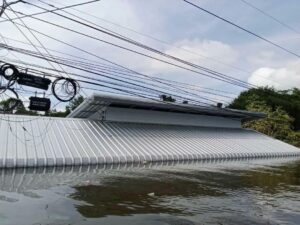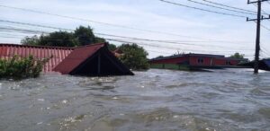 Men det verkar som att det är glömt. Byborna har problem och vet inte hur lång tid det tar att tömma vattnet. Förutom boende har även munkar också stor problem eftersom tempel längs floden Mun är översvämmade. Några tempel vid ingångsporten till templet. Det finns Naga-statyer på vägen uppför trappan är översvämmad.