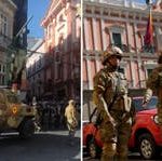 Militära styrkor har intagit det centrala torget i La Paz – och militärfordon rammat entrén till regeringsbyggnaden.