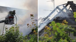 Det brinner i en villa på Lidingö och det finns risk att elden sprider sig till intilliggande hus.