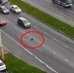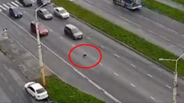 Hunden rusar rakt ut – orsakar masskrock