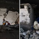 Många palestinier flydde till staden Rafah när bombningarna började i norra Gaza.
