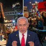 Det är en tung protest mot det uppflammande Gazakriget när de fördömer Benjamin Netanyahu i skarpa ordalag på ett torg i Tel Aviv.