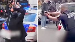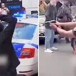 Demonstranter slår på polisbilen under polisvålds-marsch