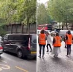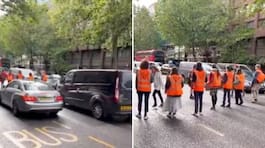 Klimataktivist blockerar vägen – blir nedslagen