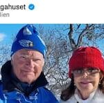 I strålande sol och bland snötäckta fjäll önskar kung Carl XVI Gustaf och drottning Silvia glad påsk på sociala medier.