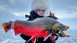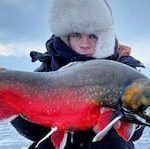 Efter två timmars tålmodiga försök nappade äntligen den praktfulla fjälllrödingen på betet.