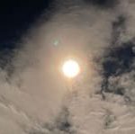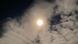På himlen såg hon en månhalo bryta igenom molnen.