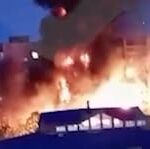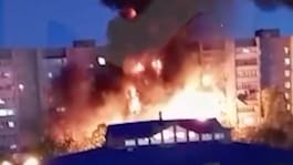 Ett ryskt militärflygplan har kraschat in i en byggnad.