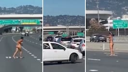 Nakna kvinnan kliver ur bilen – börjar skjuta