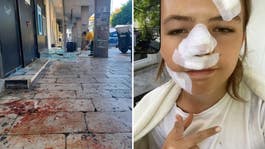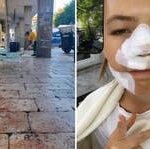 – Jag minns att det smällde till, sen blev det bara varmt i hela ansiktet av blodet som rann, säger hon.