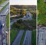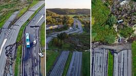 Färska bilder visar hur motorvägen slets sönder när marken plötsligt flyttades i sidled.