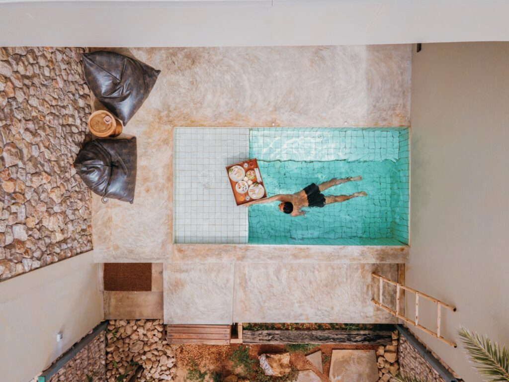 Framför huset finns en liten pool att njuta av, vid havet kommer det att finnas trädgårdstolar dekorerade med kaktus
