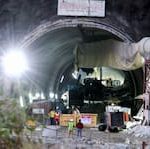 Ett knakande ljud orsakade panik – räddningspersonal tvingades sätta försöken att nå ett 40-tal vägarbetare som är instängda i en kollapsad vägtunnel på paus. Det är oklart när borrningarna kan upptas igen.