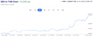 Starkare krona ger en THB kurs på 3.39
