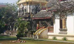 Utländska turister väcker stark kritik efter solbad vid tempel i Chiang Mai