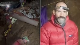 Sitter fast 1 000 meter ner i berget – nu bärs han upp