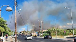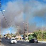 En gräsbrand rasar nära det populära turistmålet Platanias på Kreta.