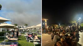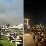 På bilder från semesterorten syns folk sola – mitt i brandröken.