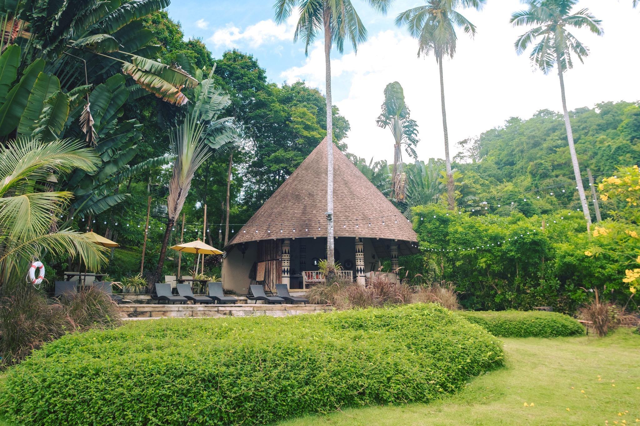 Resorten är uppbyggd med mycket trä, gröna ytor, palmer och stora luftiga ytor som gör att allt andas lugn. Här finns inga höga byggnader, inga stora folkmassor – bara harmoni och utsikt över havet.
