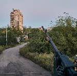 Två ukrainska soldater överlämnar sig till sina ryska motståndare.