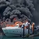 Plötsligt började yachten brinna i lyxresortens hamn.